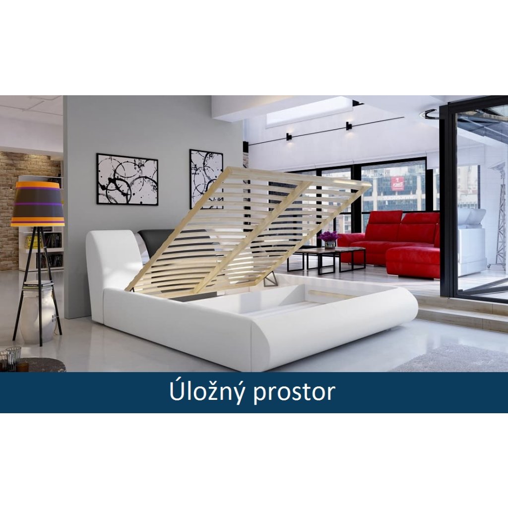 Čalouněná postel s úložným prostorem Flavio