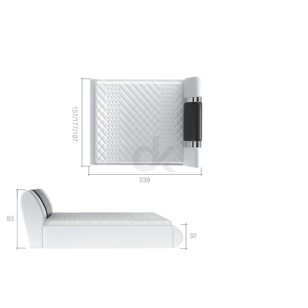 Celková délka postele včetně zadního čela - 239 cm