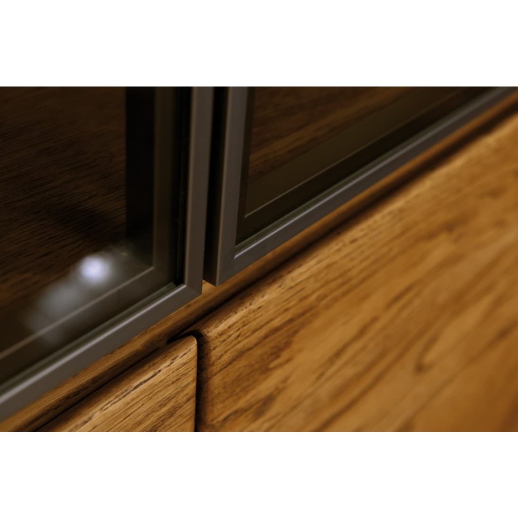 Dubový prosklený příborník je vyrobený z dubového dřeva a dubové dýhy.