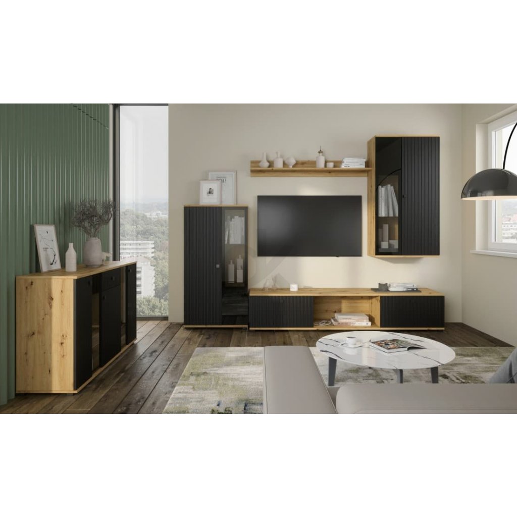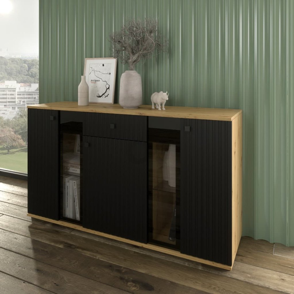 Komoda Salia 140 cm - dub Artisan/Černá