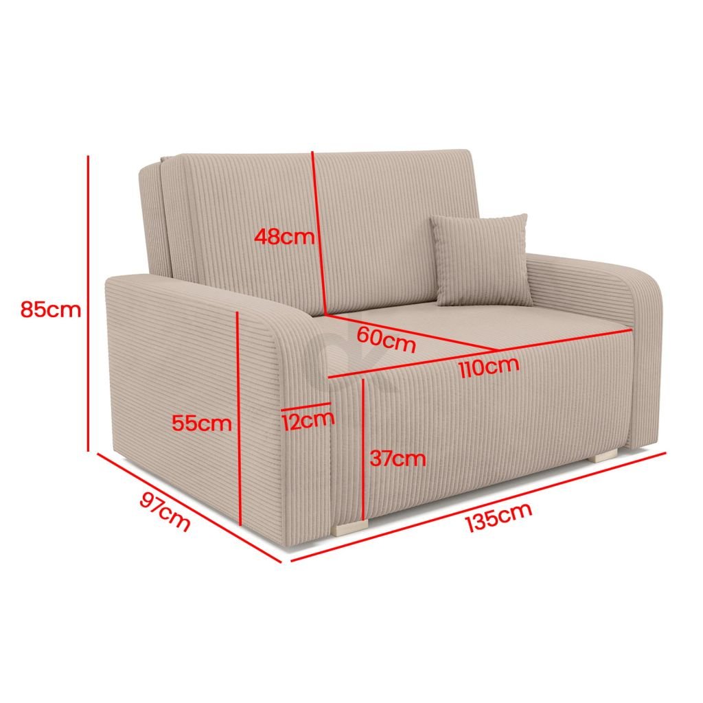 Díky funkci spaní s rozměry 110x196 cm se pohovka snadno promění na prostorné lůžko během několika okamžiků.