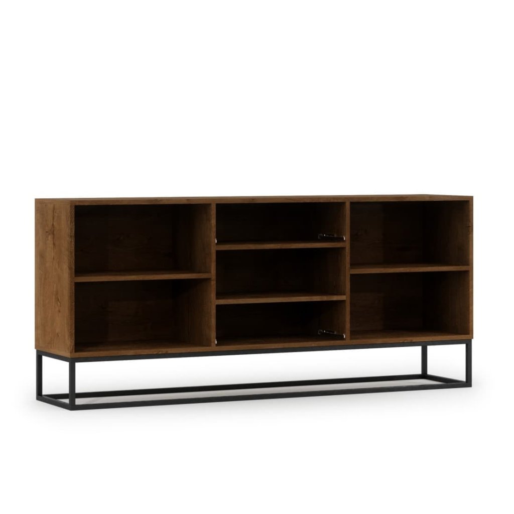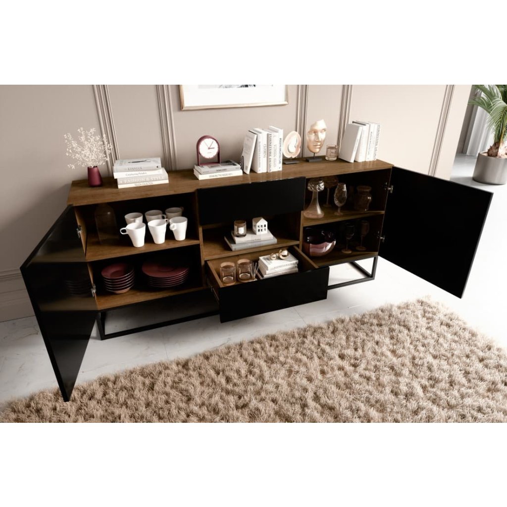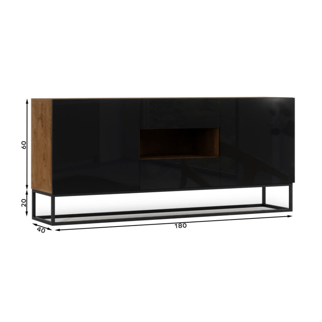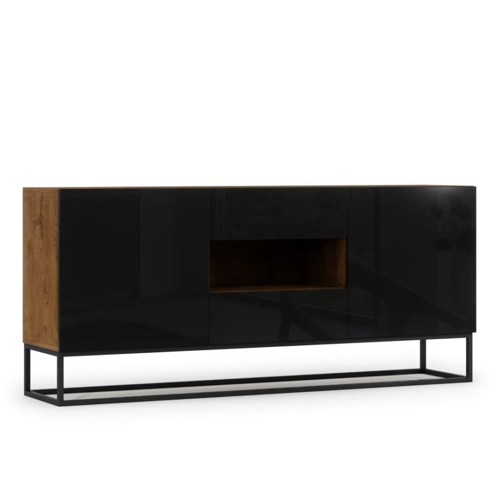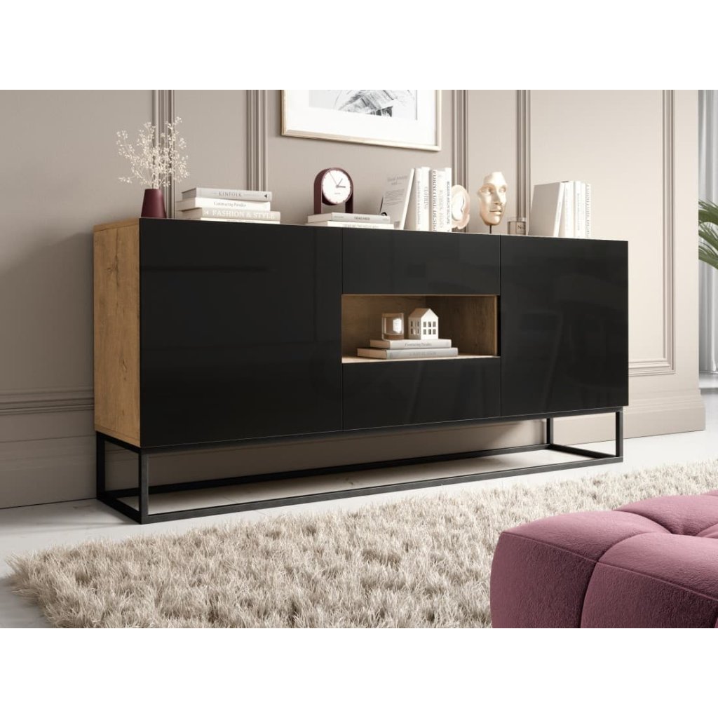 Komoda má dvě zásuvky, čtyři uzavřené police a jednu otevřenou polici. Zásuvky a dvířka se otevírají pomocí systému Push to open. (na čelo zásuvky/dvířek stačí jemně zatlačit a zásuvka/dvířka se otevřou/zavřou).
