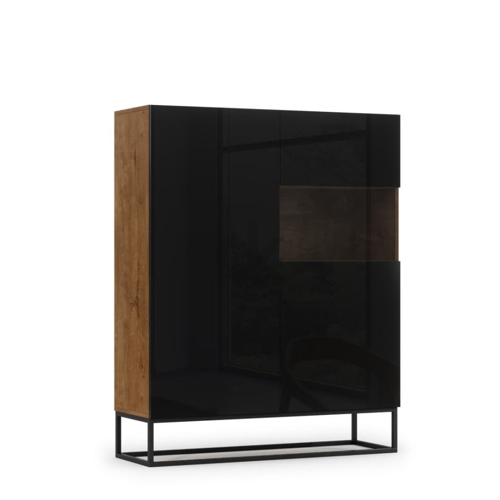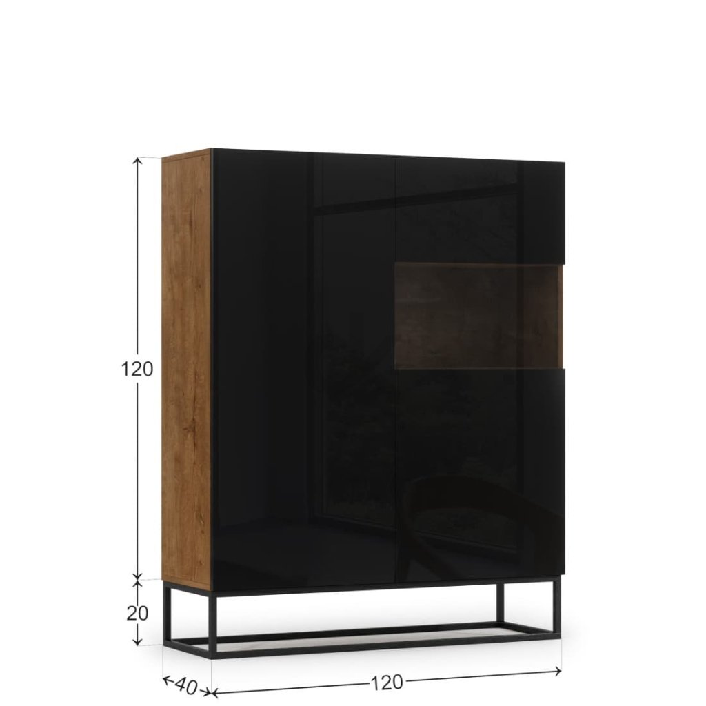 Vitrína Avorio je vyrobena z MDF. Ocelové, černé nohy nábytku dodávají velmi pěkný, čistý vzhled.