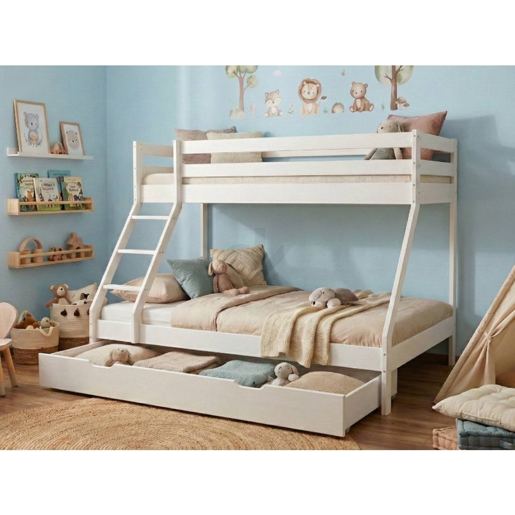 Bílá patrová postel Denis pro tři osoby včetně matrací Alisa + rošty zdarma