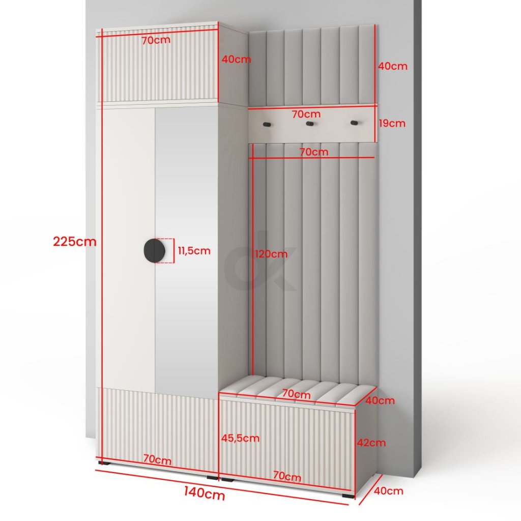 | Celková délka podél zdi: | 140 cm |