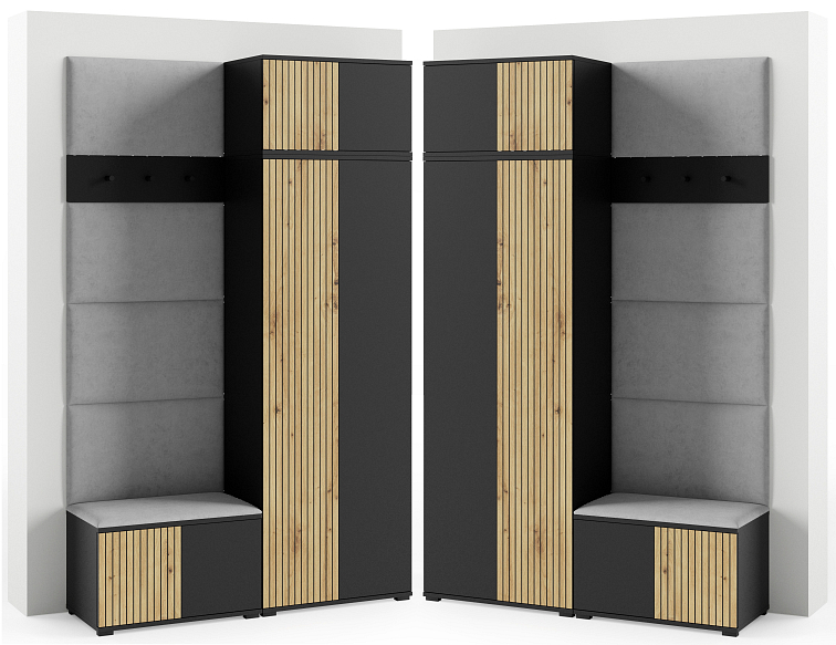 Předsíňová stěna Ross 2 - černá/dub Artisan