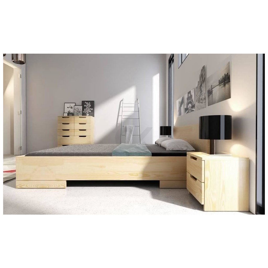 Moderní manželská zvýšená postel ze 100% masivu borovice cink.