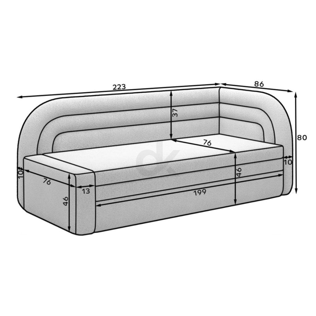 | Celková délka podél zdi: | 223 cm |