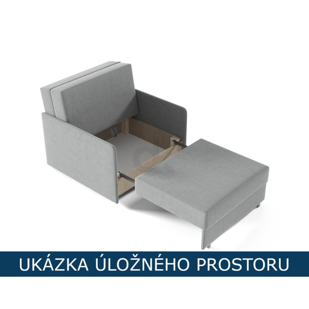 Čalouněná zadní strana umožňuje volné umístění v prostoru, zatímco jemně zaoblené područky přinášejí maximální pohodlí při sezení i relaxaci. Díky svým rozměrům je ideální volbou do menších bytů, dětských pokojů či pracoven, kde oceníte jak komfort, tak funkčnost a dostatek úložného místa.
