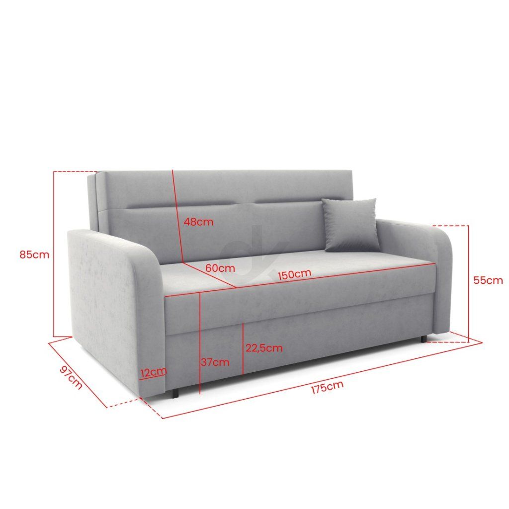Šířka 175 cm, hloubka 97 cm, výška 85 cm, výška sedu 37 cm, hloubka sedu 60 cm - Funkce spaní