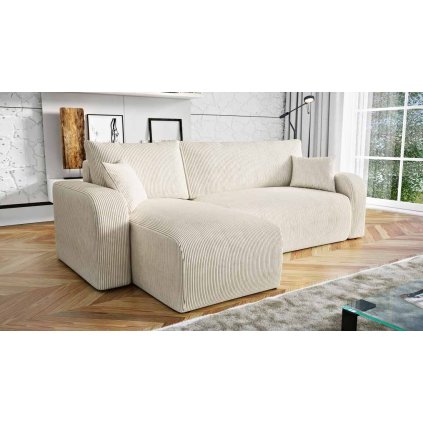Díky univerzálnímu provedení lze orientaci rohu zvolit až při montáži, takže sedačka Lavana se snadno přizpůsobí rozložení vašeho obýváku. Potahová látka Poso 135 je nejen elegantní na pohled, ale také velmi odolná a příjemná na dotek. Ideální řešení pro každodenní použití i příležitostné spaní.