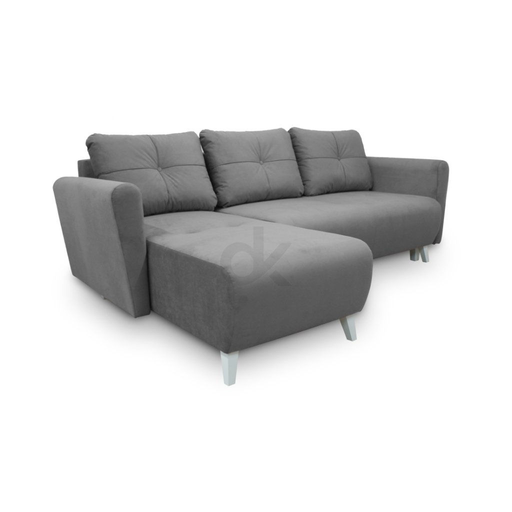 Elegantní rohová sedací souprava Monet v šedé barvě zaujme moderním vzhledem i praktičností. Hlavní výhodou je snadné rozkládání na prostorné lůžko a velký úložný prostor na lůžkoviny. Kvalitní výplň z pružin bonell a pěny T30 poskytuje příjemné pohodlí při sezení i spánku, zatímco masivní konstrukce zaručuje dlouhou životnost. Univerzální provedení umožňuje volbu orientace při montáži, díky čemuž se skvěle hodí do každého interiéru.