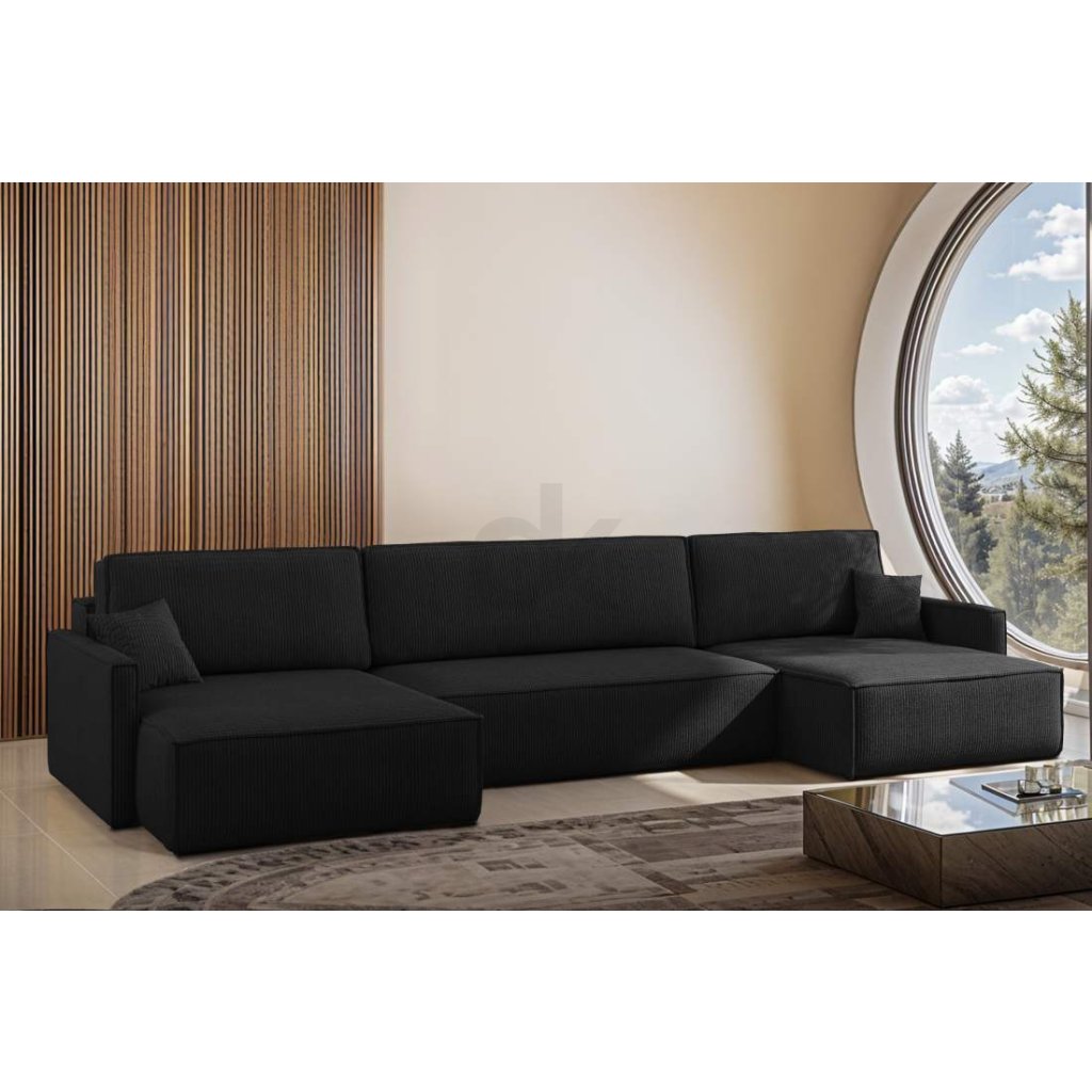 Černá rohová sedací souprava do U Karlos s úložným prostorem