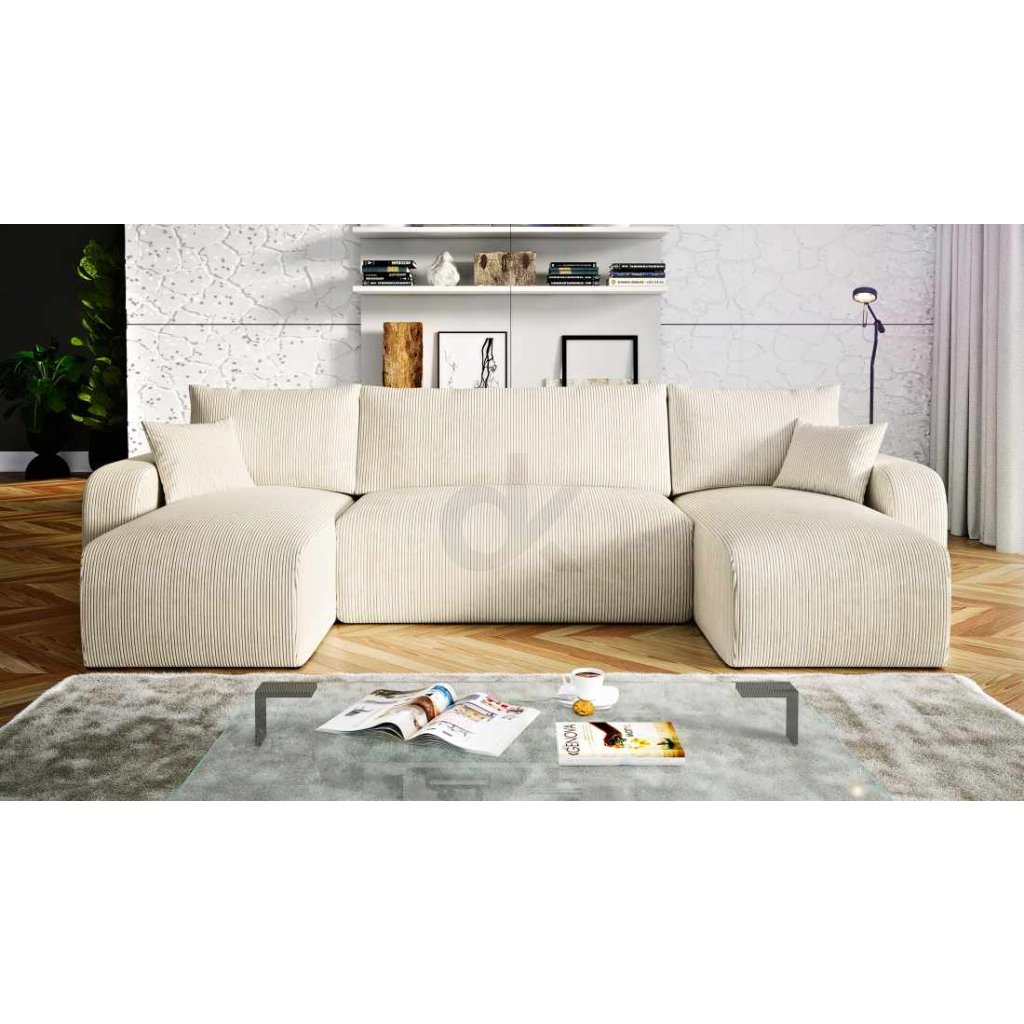 LAVANA – béžová sedací souprava do U s úložným prostorem a funkcí spaní