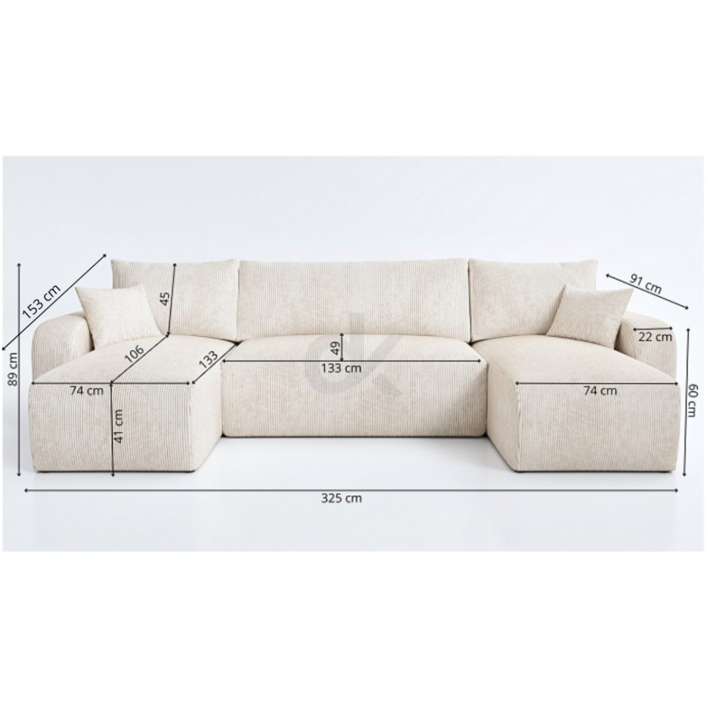 šířka 325 cm, hloubka 153 cm, výška 89 cm, výška sedu 41 cm - Funkce spaní