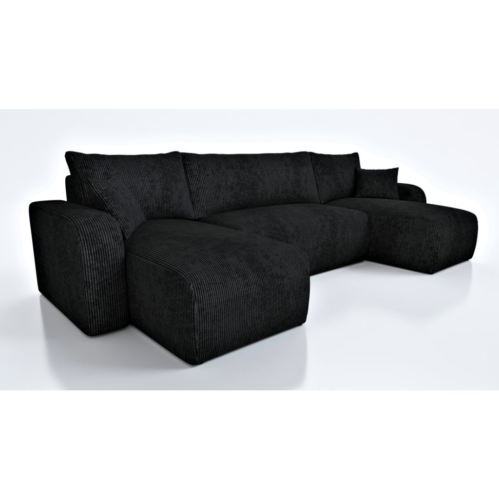 Díky měkkému manšestrovému povrchu a prostornému tvaru do U se Lavana stane srdcem vašeho obýváku. Praktická funkce spaní 133x281 cm je ideální pro každodenní využití, nechybí ani velký úložný prostor. Moderní černá barva působí elegantně a je skvělou volbou do moderních i industriálních interiérů.