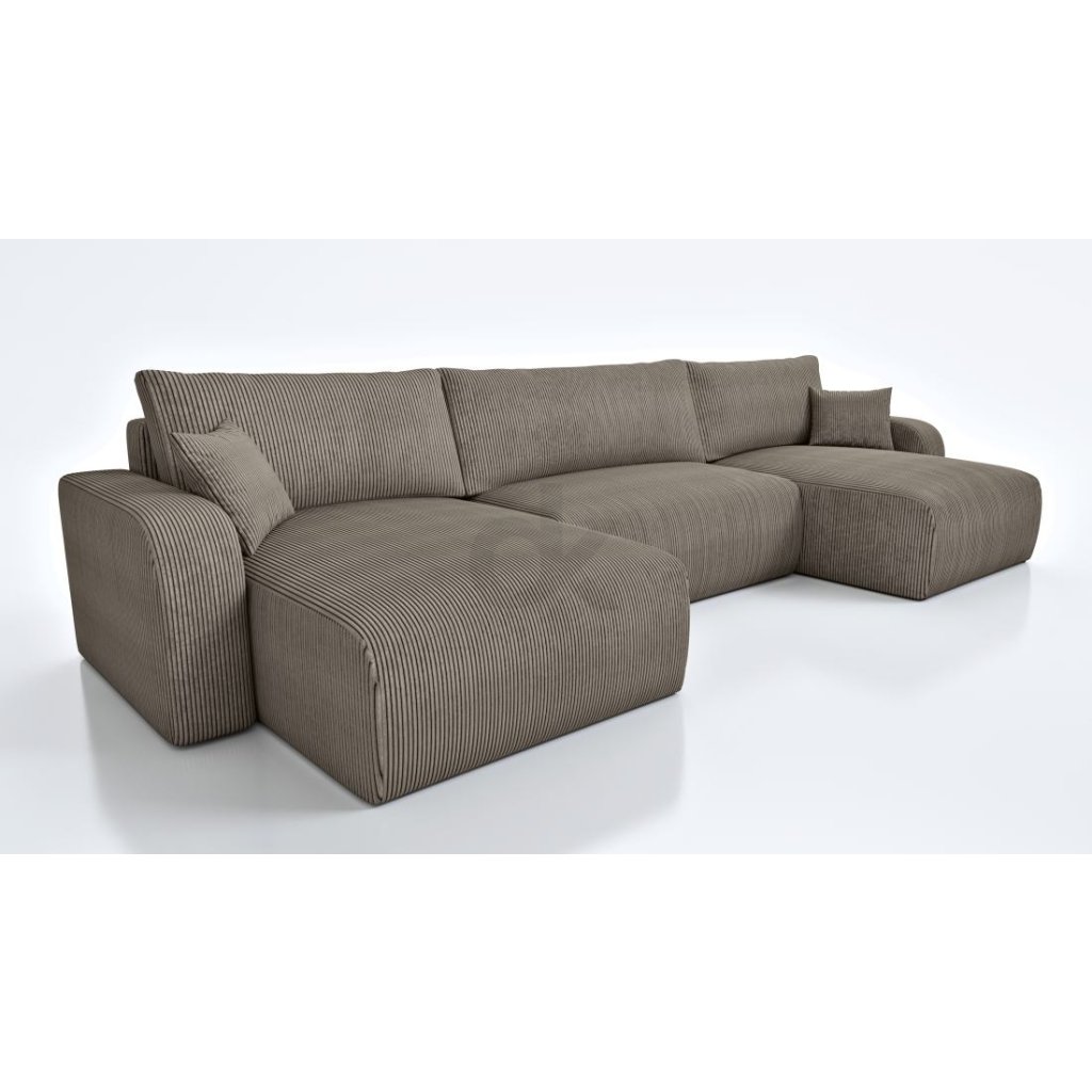 Maximální komfort i prostor nabízí rohová sedací souprava v populárním tvaru U, která se stane dominantou každého obývacího pokoje. Díky rozkládací funkci na každodenní spaní a praktickému úložnému prostoru je ideální pro větší rodiny i časté návštěvy. Čalouněná záda umožňují umístění sedačky volně do prostoru, měkké polštáře a kvalitní pěnová výplň zajistí pohodlí při sezení i ležení.