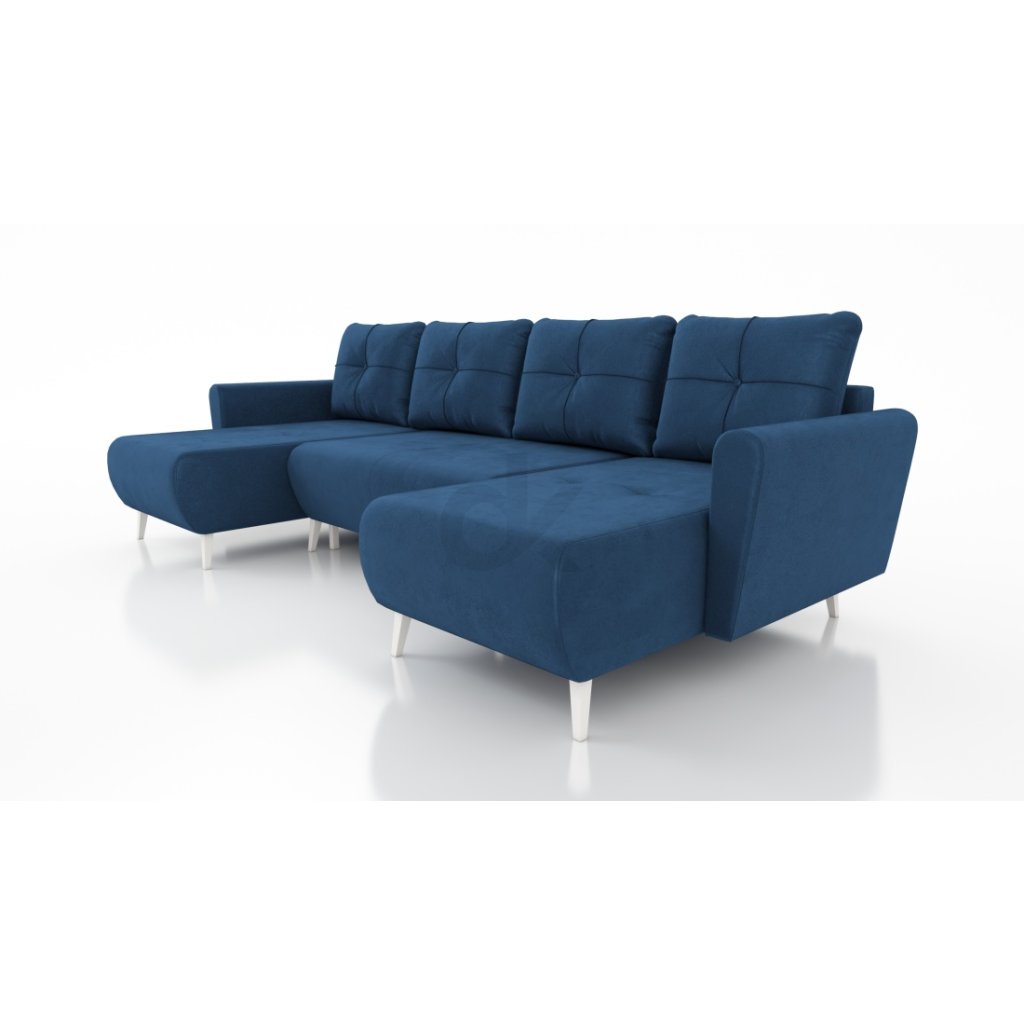 Moderní modrá sedací souprava do U s rozkladem a úložným prostorem