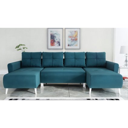 MONET U – prostorná zelená sedačka do U s rozkladem a úložným prostorem