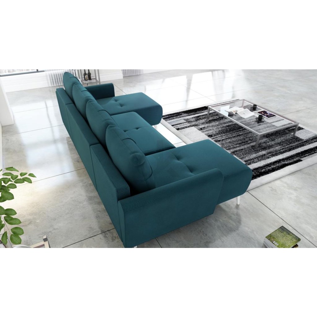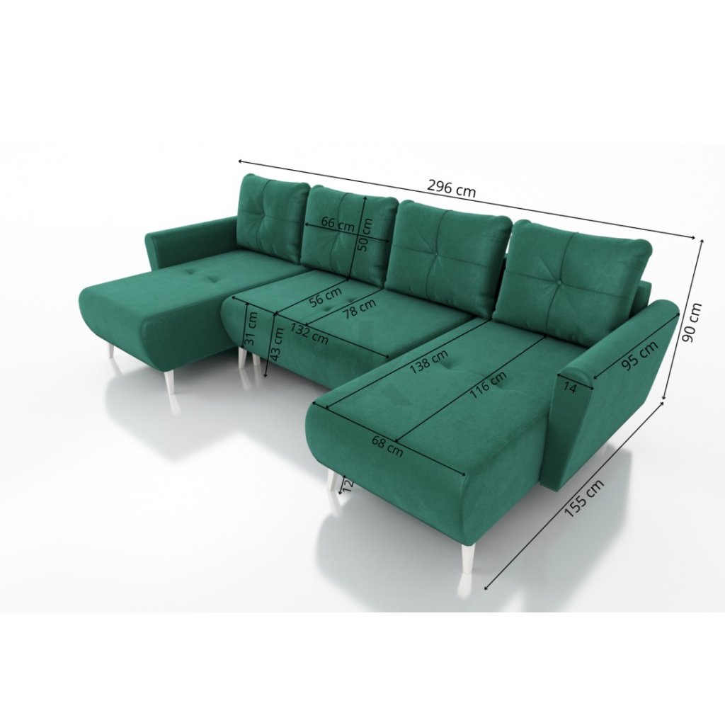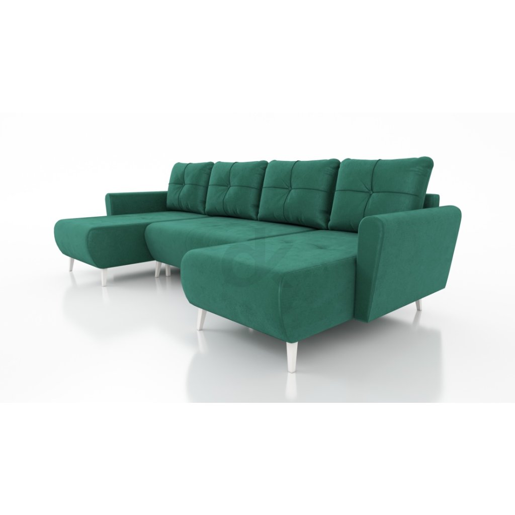 MONET U – prostorná zelená sedačka do U s rozkladem a úložným prostorem