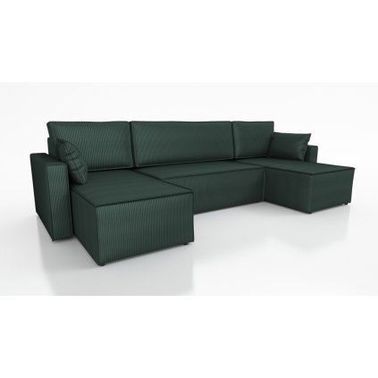Díky rozměrům 315x150x85 cm ve tvaru U pohodlně usadíte spoustu osob. Vysoká zádová opěrka a praktické polštáře na zip zaručují dokonalou relaxaci. Celý zadní díl je čalouněný, takže sedačku můžete umístit volně do prostoru.