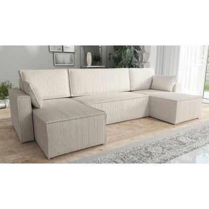 RUBI U je moderní sedací souprava, která zaujme čistým designem, prostorným posezením a příjemnou potahovou látkou připomínající manšestr. Hlavní výhodou je rozkládací plocha o rozměrech 131x285 cm a velký úložný prostor na lůžkoviny. Sedák z kvalitní studené pěny T28/42 a vlnité pružiny zajišťuje vysoký komfort při sezení i spaní, zatímco měkké opěrky a polštáře poskytují perfektní podporu zad i hlavy.