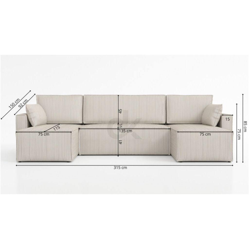 šířka 315 cm, hloubka 150 cm, výška 85 cm, výška sedu 41 cm - Funkce spaní