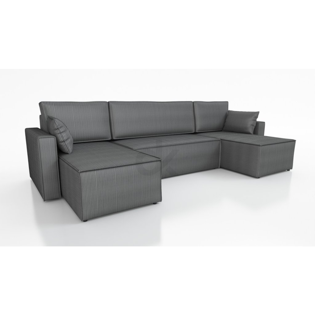 RUBI U je moderní sedací souprava, která zaujme čistým designem, prostorným posezením a příjemnou potahovou látkou připomínající manšestr. Hlavní výhodou je rozkládací plocha o rozměrech 131x285 cm a velký úložný prostor na lůžkoviny. Sedák z kvalitní studené pěny T28/42 a vlnité pružiny zajišťuje vysoký komfort při sezení i spaní, zatímco měkké opěrky a polštáře poskytují perfektní podporu zad i hlavy.