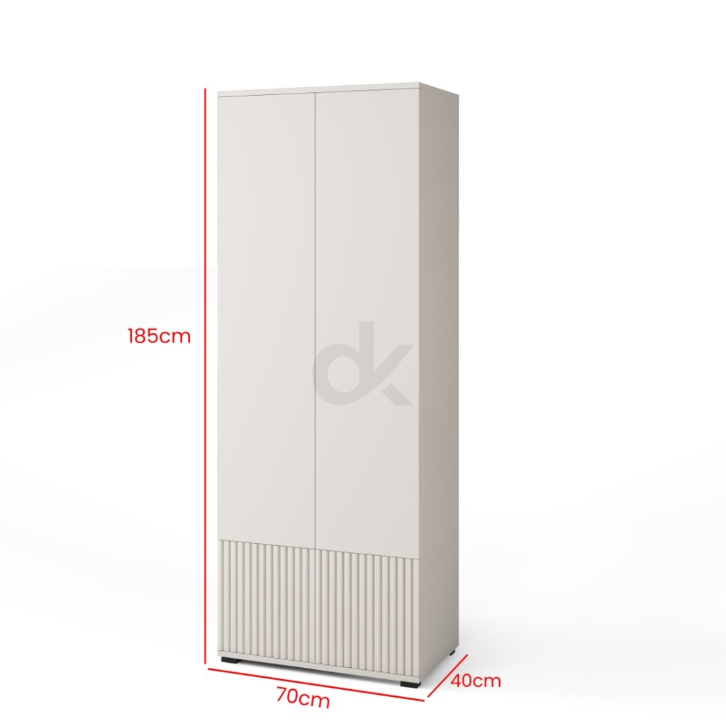 Šatní skříň Rayo 70 cm je moderním a funkčním kusem nábytku, který skvěle zapadne do každého interiéru. Je vyrobena z kvalitního lamina a opatřena odolnými ABS hranami, které ji chrání před opotřebením a nárazy, což zajišťuje její dlouhou životnost a odolnost.