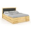 Manželská zvýšená postel s úložným prostorem ze dvou stran, masiv borovice přírodní - cink.