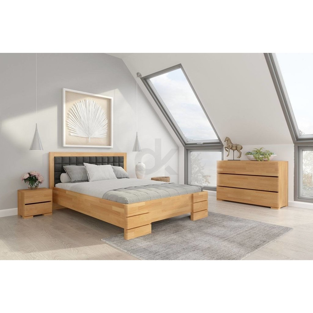 Manželská postel je vyrobená z masivního buku.